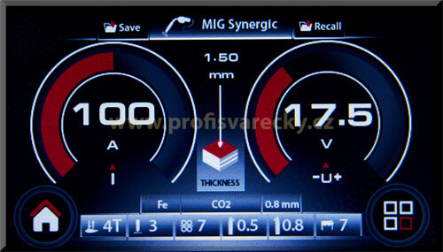Stroj je vybaven synergickým programem pro ocelové, hliníkové, nerezové a CuSi materiály. Synergický program zajišťuje uživateli jednoduché a intuitivní ovládání stroje. Uživatel nastaví průměr drátu, druh plynu, svařovaný materiál a stroj zajistí nastavení ostatních parametrů pro získání perfektních svařovacích vlastností.