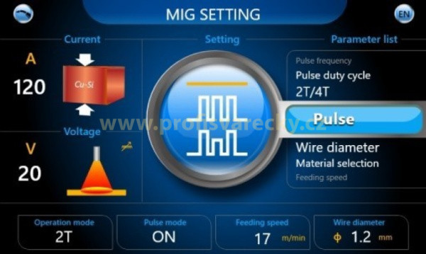 • Svařování MIG/MAG s jednoduchým a dvojitým pulsem