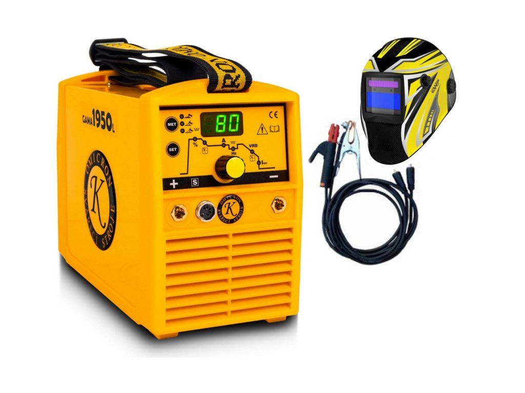 Set invertoru Gama 1950L + gumové svařovací kabely 5 m + samostmívací kukla dle výběru