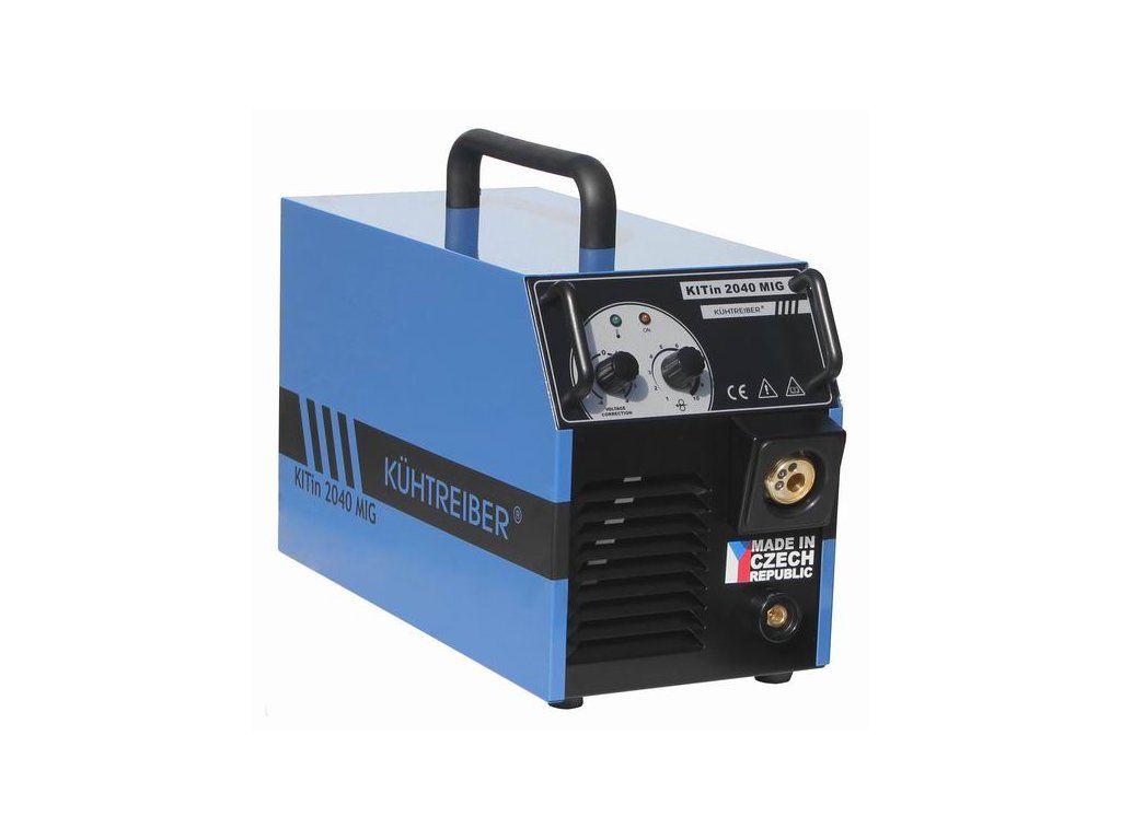 KITin 2040 MIG EURO je přenosný invertorový svařovací stroj MIG/MAG miniaturních rozměrů a hmotnosti pouhých 11,2 kg. Je též vhodný pro provoz na elektrocentrálu, například na staveništích. Svářečka umožňuje snadné nastavování svařovacích parametrů synergicky jedním potenciometrem podle síly materiálu. Druhým potenciometrem se provádí jemná korekce napětí, která určuje délku oblouku. Stroj je optimálně naladěn pro svařování ocelí drátem o průměru 0,8 mm, ale můžeme také použít drát 0,6, nebo 1,0 mm. Pro připojení svařovacího hořáku je vybaven normalizovanou euro-přípojkou.