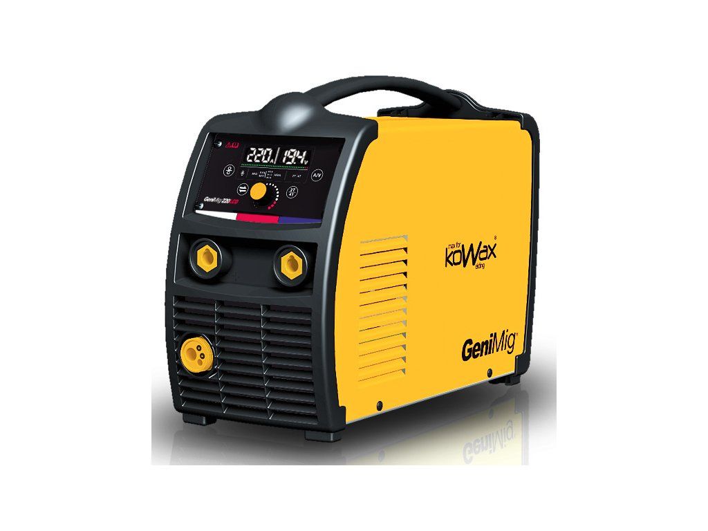 KOWAX® GeniMig 220LCD je malý, ale výkonný invertorový svařovací zdroj nové generace pro svařování metodou MIG/MAG a MMA. Svářečka je vybavena normalizovanou euro-přípojkou hořáku, kovovým posuvem drátu s kladkami pro 0,6, 0,8 a 1,0 mm a je určena pro cívky s drátem 5 kg. Pro svařování samoochranným trubičkovým drátem je možná změna polarity. Napětí i posuv se nastavují plynule synergicky jedním knoflíkem a v případě potřeby můžeme doladit korekci napětí oblouku. Možné je i přepnutí do manuálního režimu. Výhodou je také možnost připojit svařovací kabely pro svařování obalenou elektrodou (MMA).
