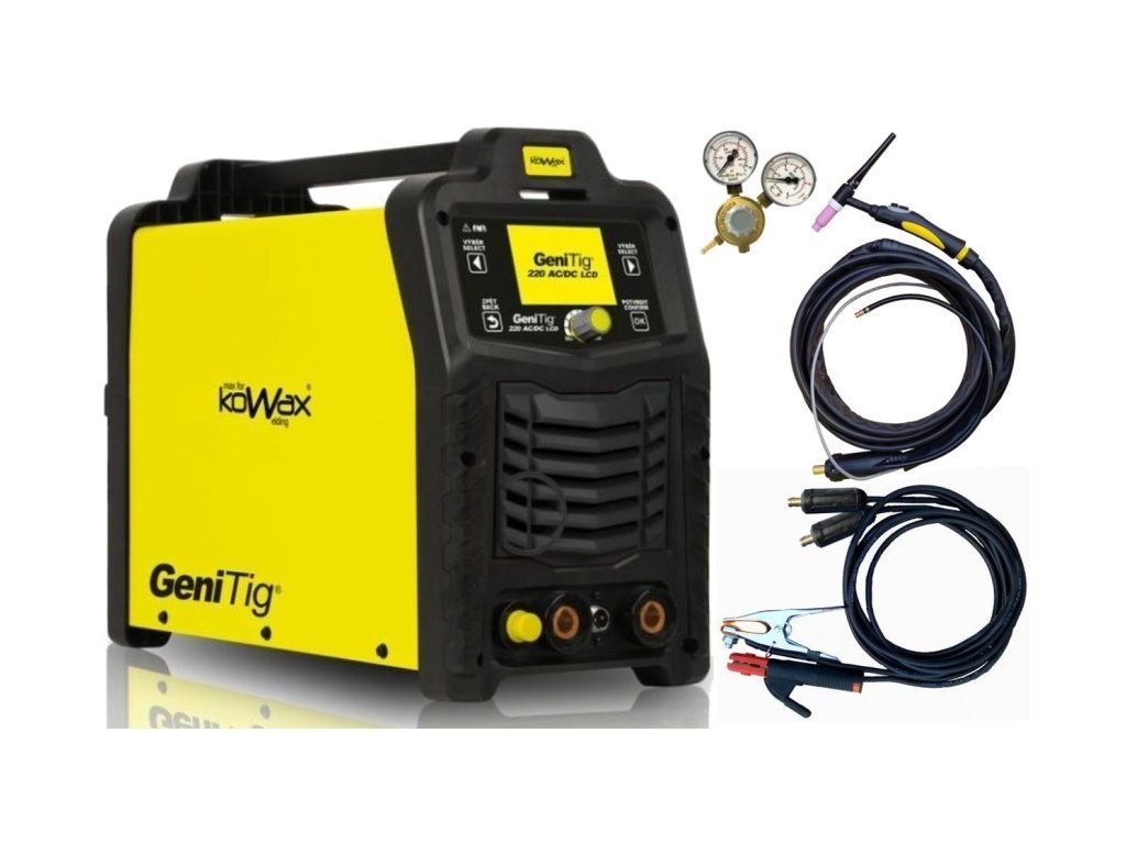 Kowax GeniTig 220 AC/DC LCD + hořák TIG + sv. kabely + red. ventil