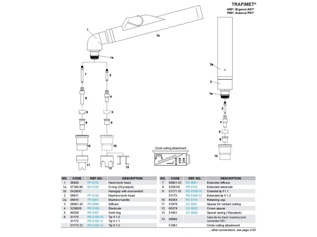 LT-81- Plazmový řezací hořák pro ruční plazmové řezání do 80 A/6 m pro stroje s HF zapalováním s centrální přípojkou