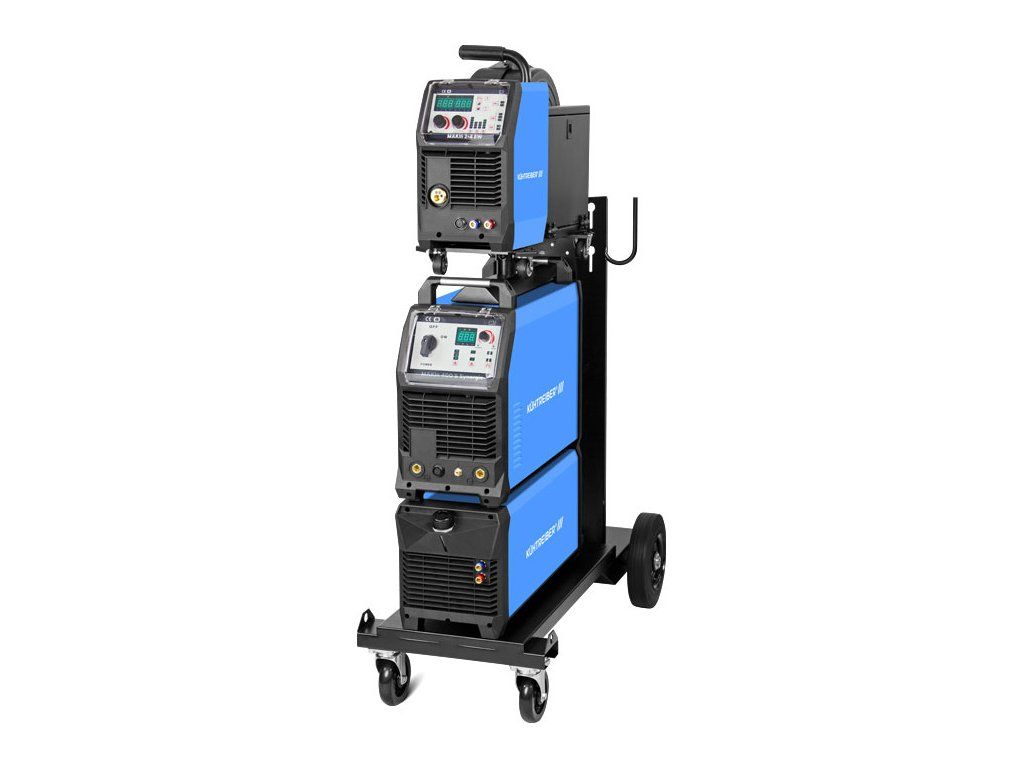 MAKin 400 S Synergic se snímatelným podavačem MAKin 2-4 EW Synergic, propojovacím kabelem 5 m, kapalinovým chlazením MAKin C316W a vozíkem MAKin.