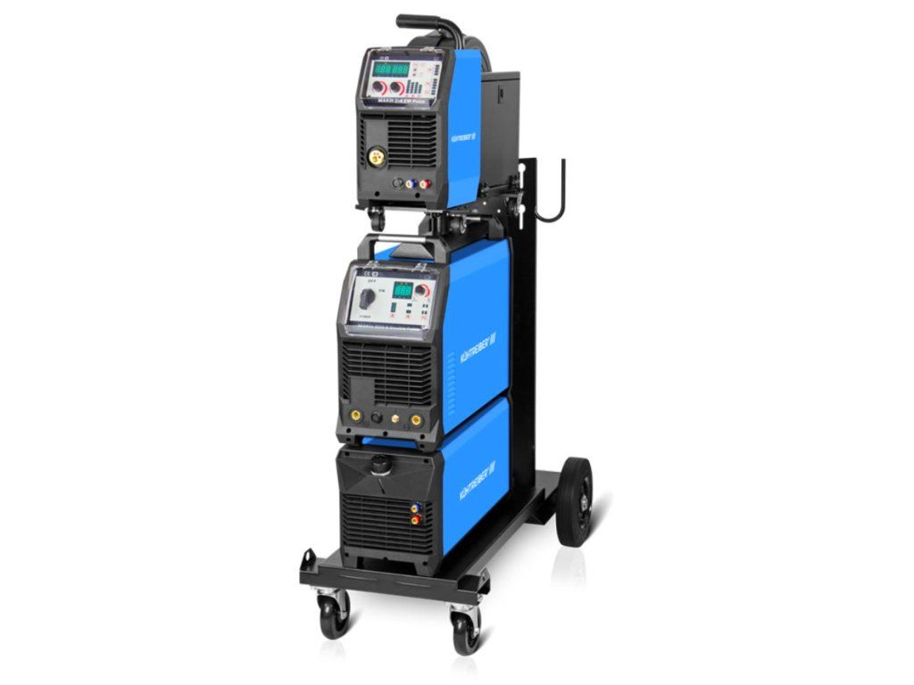 MAKin 500 S Synergic se snímatelným podavačem MAKin 2-4 EW Synergic, propojovacím kabelem 5 m, kapalinovým chlazením MAKin C316W a vozíkem MAKin.